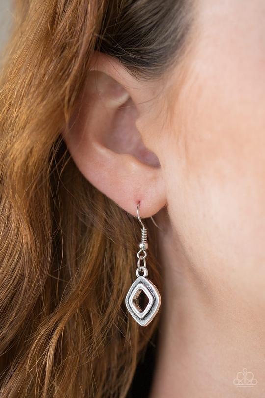 Brushed in an antiqued shimmer, glistening diamond-shaped silver frames link below the collar, coalescing into an edgy geometric fringe. Features an adjustable clasp closure.