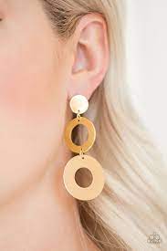 Attached to a gold fitting, glistening gold hoops link together, creating a shimmery lure. Earring attaches to a standard post fitting.