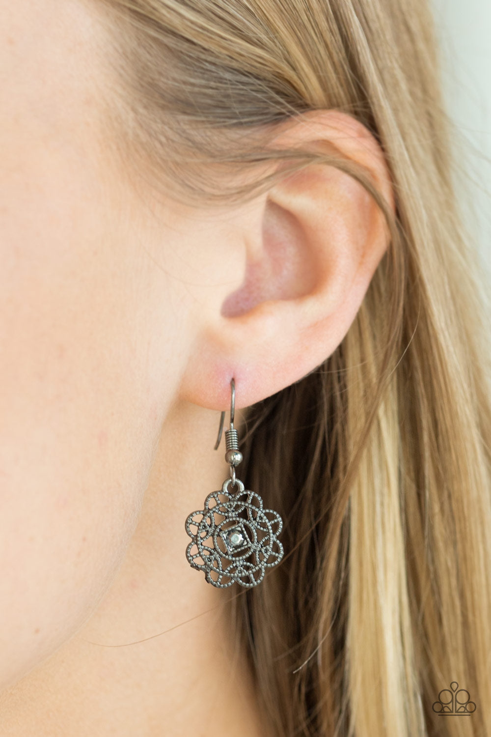 Encrusted in glittery hematite rhinestones, ornate filigree filled gunmetal frames link below the collar for a vintage inspired style. Features an adjustable clasp closure.